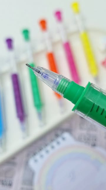 خودکار جوهر آبی طرح سررنگ موجود شد رنگای متنوعی داره ولی رنگ جوهر همشون آبیه نوک باریک و خوشنویسی داره شاید قیافش زمخت باشه ولی ریز و نمک مینویسه