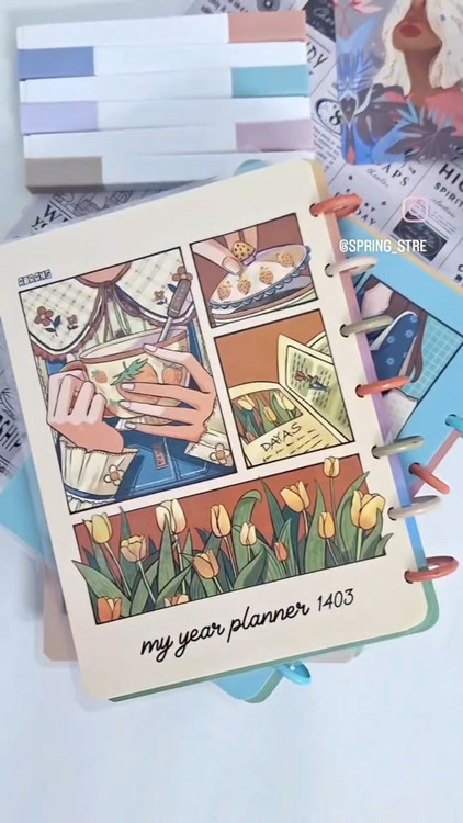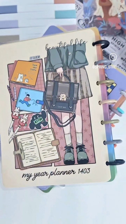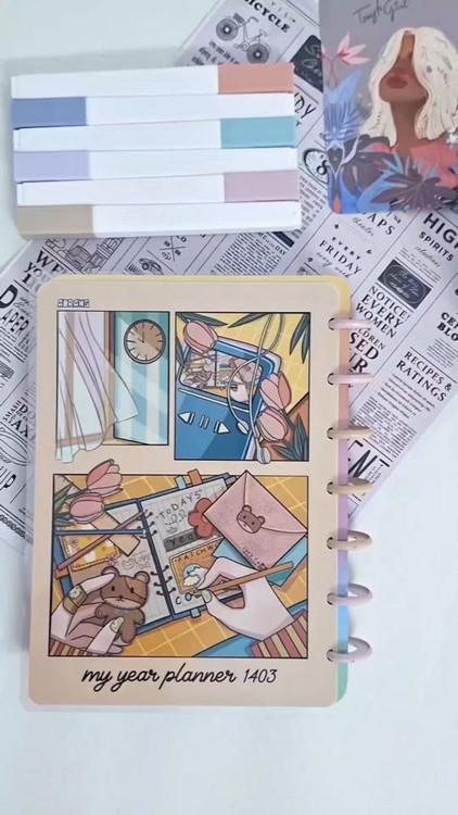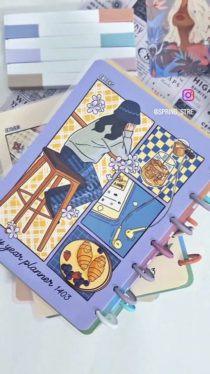 علاوه بر طرحهای پینترستی که داره یه پلنر سالانه هست که کلی آیتم برای برنامه ریزی داره مثل : برنامه ریزی روزانه و ماهانه و هفتگی و فصلی یا ردیاب عادات و کتاب خوندن و مسافرت و ورزش و کیفیت جلد شیشه ای زیبا و طرح دکمهای خیلی کارتون رو راحت میکنه طرح دکمهای ینی بدون پاره کردن و کندن برگها میتونید درشون بیارید و هرجایی ک دوست دارید بزنیدش