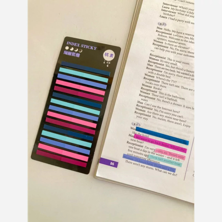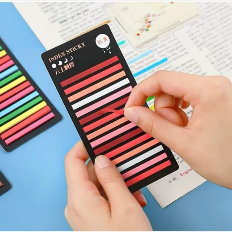 چی بهتر از یندکس هایلایتری رنگین کمونی !؟ ایندکسهای شفاف رو میتونید بعنوان هایلایتر استفاده کنید هم بعنوان دیوایدر و هم استیک نوت میشه ازش استفاده کنید بحاطر چسب قویای که داره میتونید چندین دفعه بچسبونید ۶ طیف رنگی داره؛ قرمز.سبزجی.بنفش.زرد.کالباسی ۳۰۰ دونه داره در ابعاد ۵۰×۴ میلیمتر ، هر بسته ۱۵ رنگ متفاوت داره