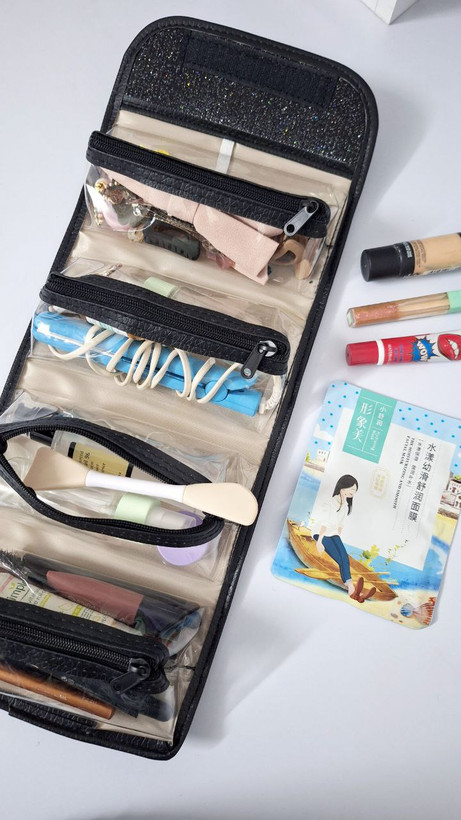 بگ آرایشی شاینی دارای 4 خونه مجزا برای لوازم آرایشی و لوازم مو و حتی اکسسوری