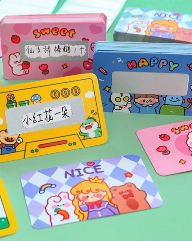 کارت پستال های خراشیدنی با کلی تم کیوت آوردیم مث کارت شارژهای قدیمیه و خراشش بدی متن زیرش رو میبینی راستی متنش رو هم خودت میتونی بنویسی برای هدیه دادن خیلی خاصه اگرم آنلاین شاپ داری برای بسته بندیت عالی میشه میتونین بصورت پک ۵تایی تهیه کنی
