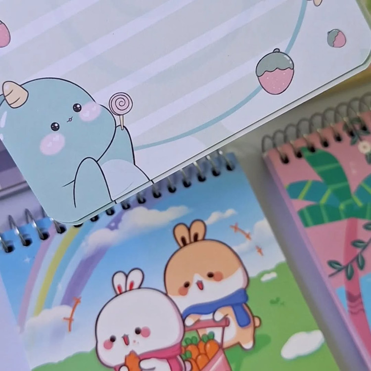 دفترچه های سیمی فانتزی با کلی طرح دوباره شارژ شد همه نوع طرحی چه دخترونه چه پسرونه موجوده دفترچهها حاشیه دار و خطی هستن بخاطر ابعاد مناسبش داخل کیف براحتی جا میشن جلد مقوایی گلاسه ۸۰برگ ابعاد ۱۰۱۰