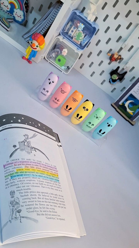 مینی هایلایتر فانتزی حیوانات موجود شد ست ۶ عددی این هایلایترها خیلی کاربردیه رنگ هایلایترها پاستلیه و چشم رو اذیت نمیکنه پک و بسته بندی فوق العاده باکیفیت میتونین استندش رو روی میز بذارید