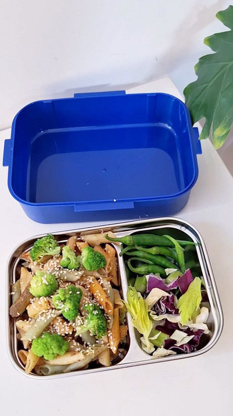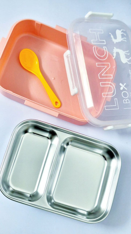 لانچ باکس داخل ظرف استیل دو قسمته موجود شد سه رنگ پاستلی و جذاب داره ؛ سبز صورتی و کاربنی
