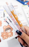 و خودکار باکیفیت و ورقه استیکر و جوهر یدک هم داشته باش خودکارها یکی کلیکی و یکی سادست جوهر همشون مشکیه و خیلی روون و باکیفیتن